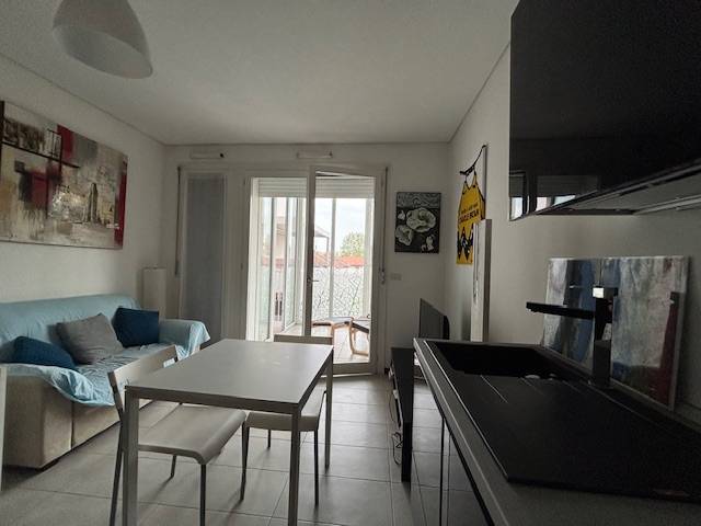 L'ingresso si apre sul soggiorno con una moderna cucina a vista, perfettamente arredata e dotata di tutti i comfort necessari per una vita quotidiana confortevole.